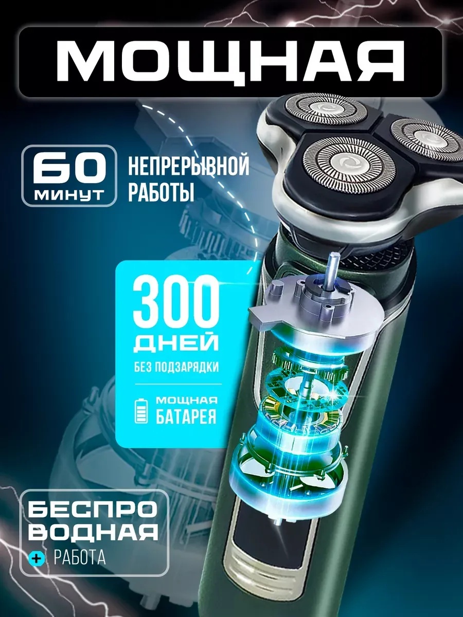 Электрическая бритва работает от аккумулятора, что обеспечивает свободу движений во время процедуры. Можно не беспокоиться о запутанных проводах — просто зарядите устройство заранее.